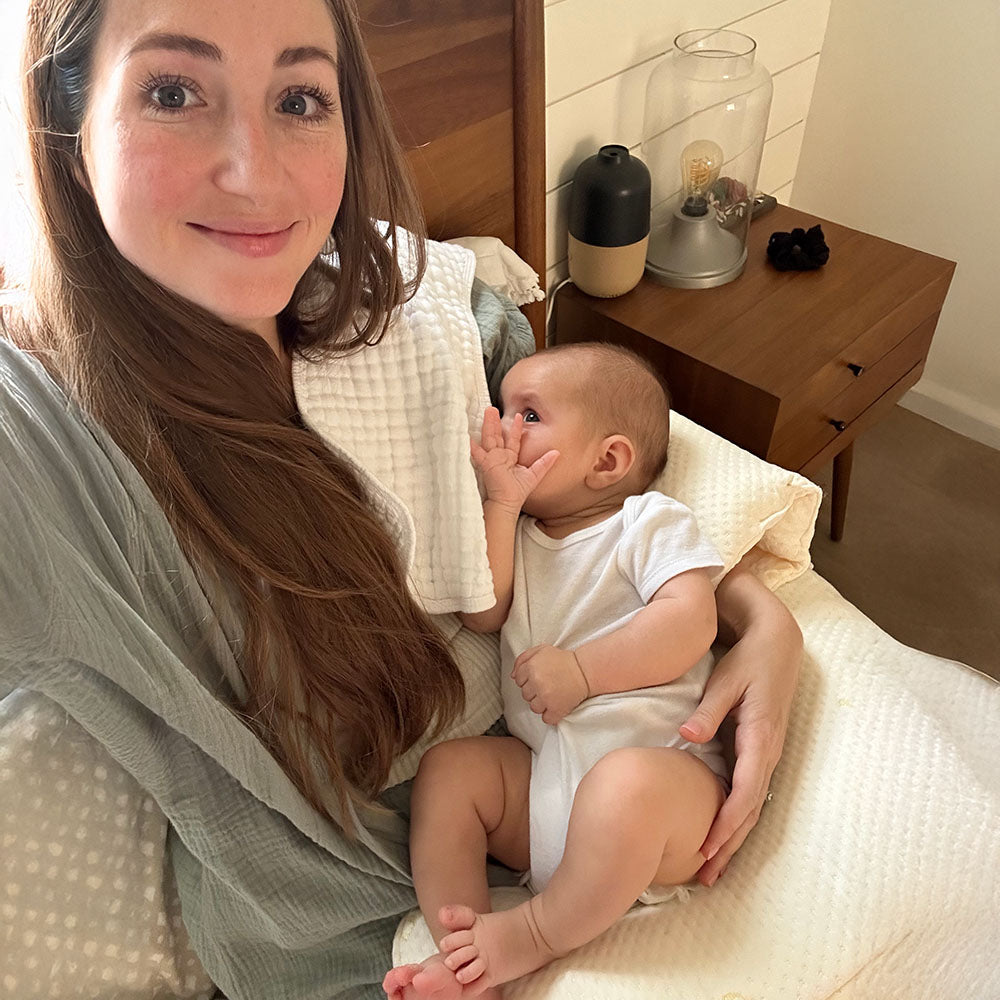 After feeding, transform the same pillow into a snug baby pod for supervised lounging. The slight elevation helps with reflux while keeping your little one safe and close by during tummy time.