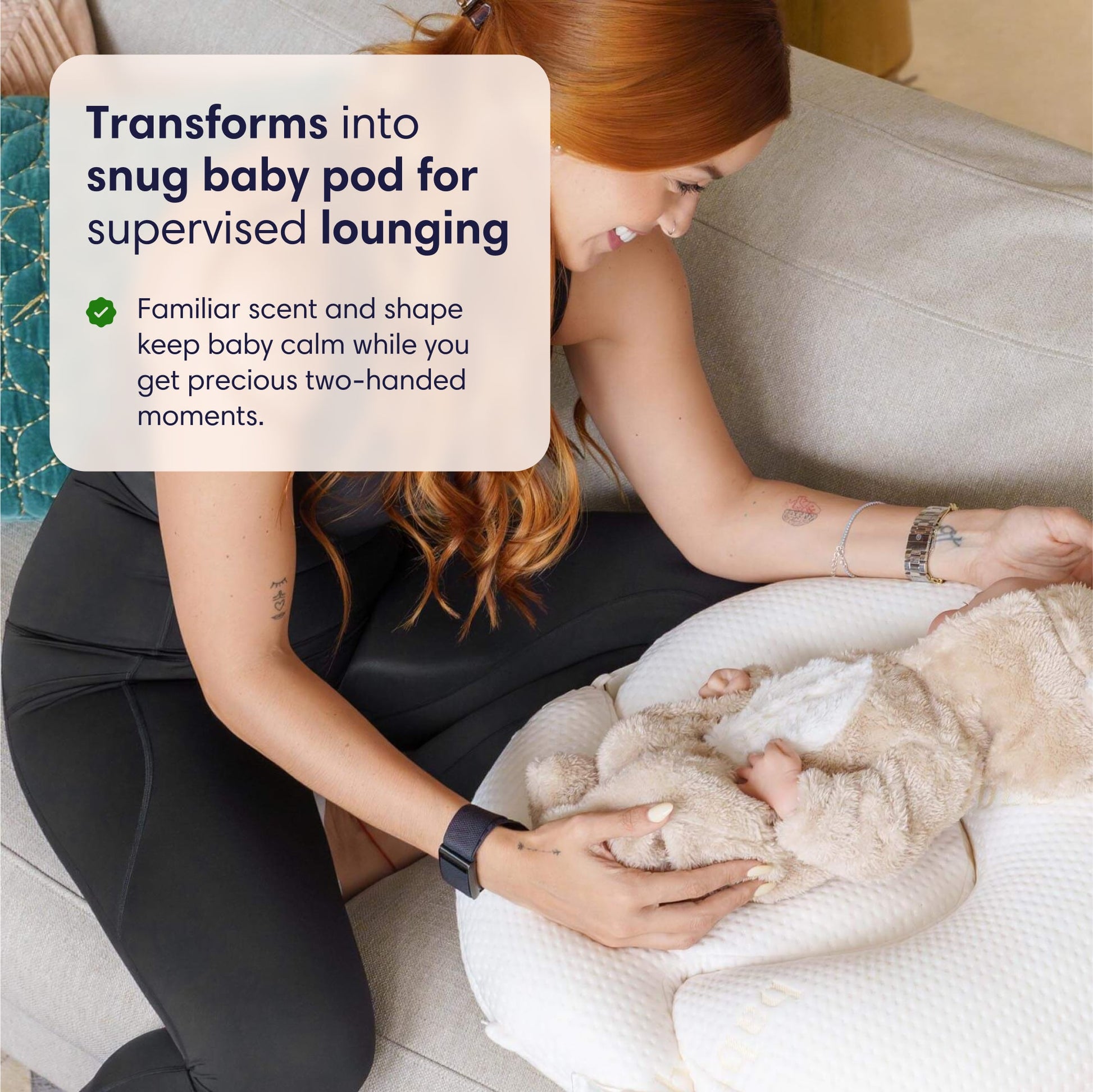How do I transform it into a baby pod? Simply lay the nursing pillow flat and add the breathable bumper pad. Baby gets a familiar, snug spot for supervised lounging, tummy time, or reflux relief - all with the same scent and feel they know from feeding time.