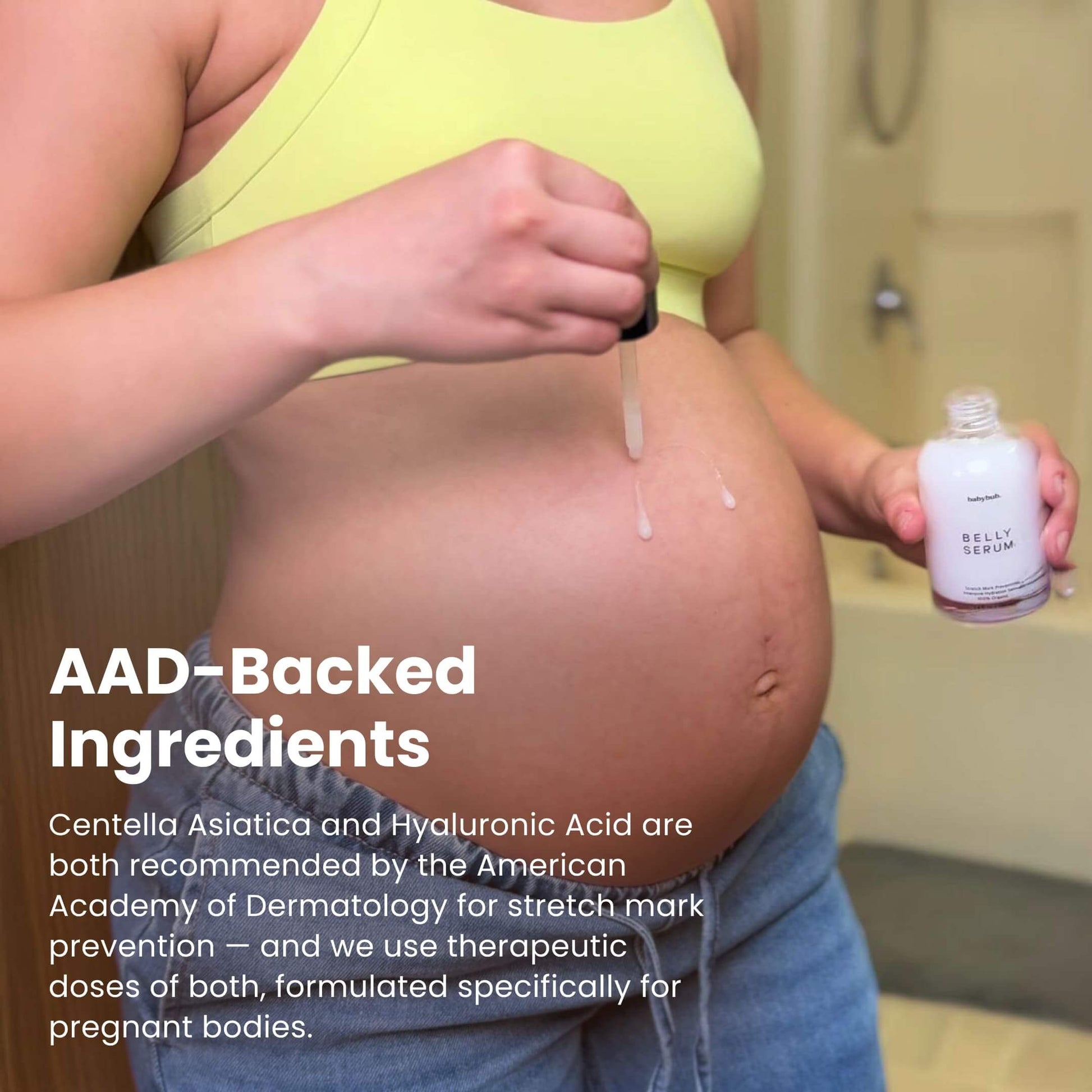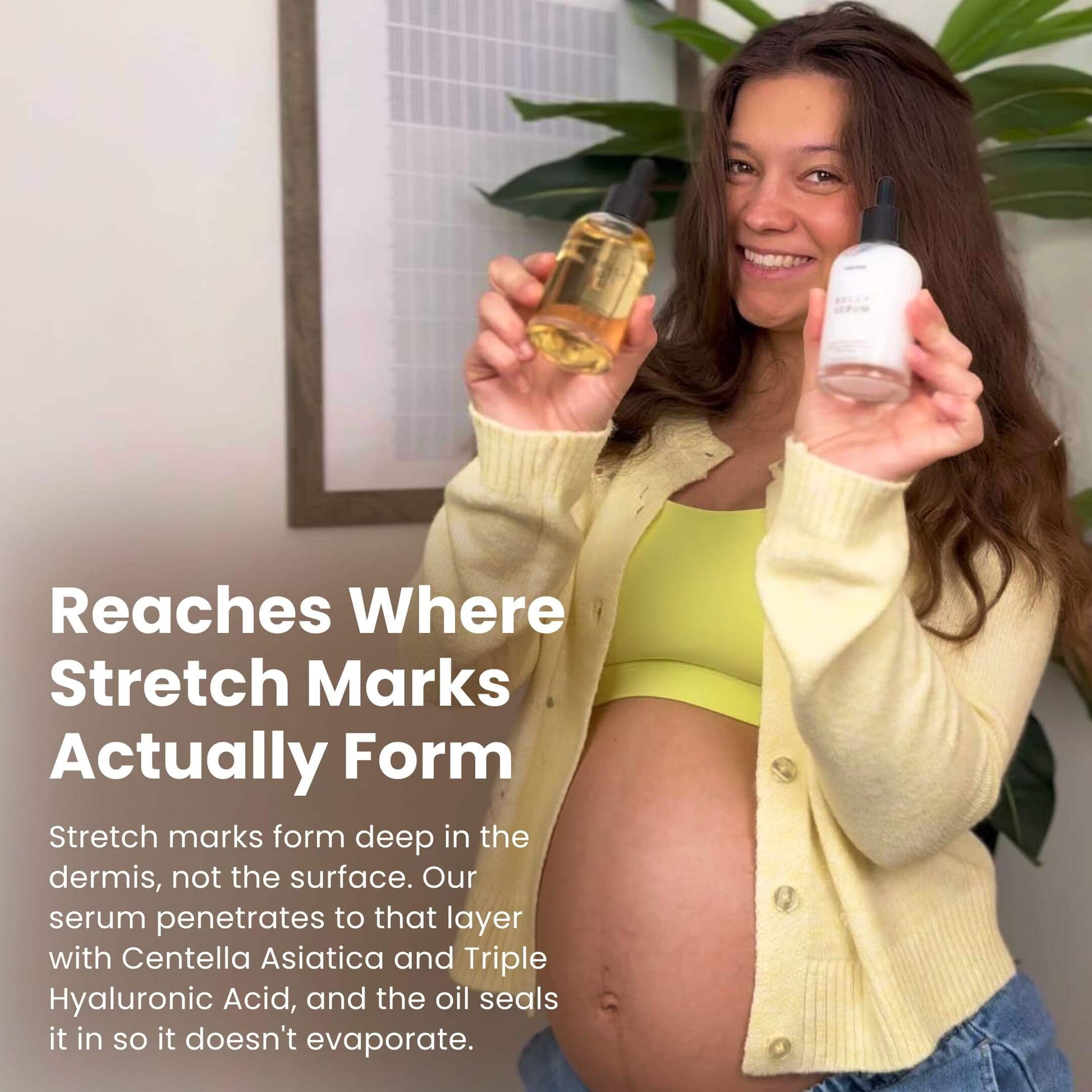 The only system designed to penetrate beyond the surface (epidermis) to the dermis where stretch marks actually form. Centella Asiatica + Triple-Weighted Hyaluronic Acid boost collagen and provide deep hydration at the source of the problem not just surface comfort.