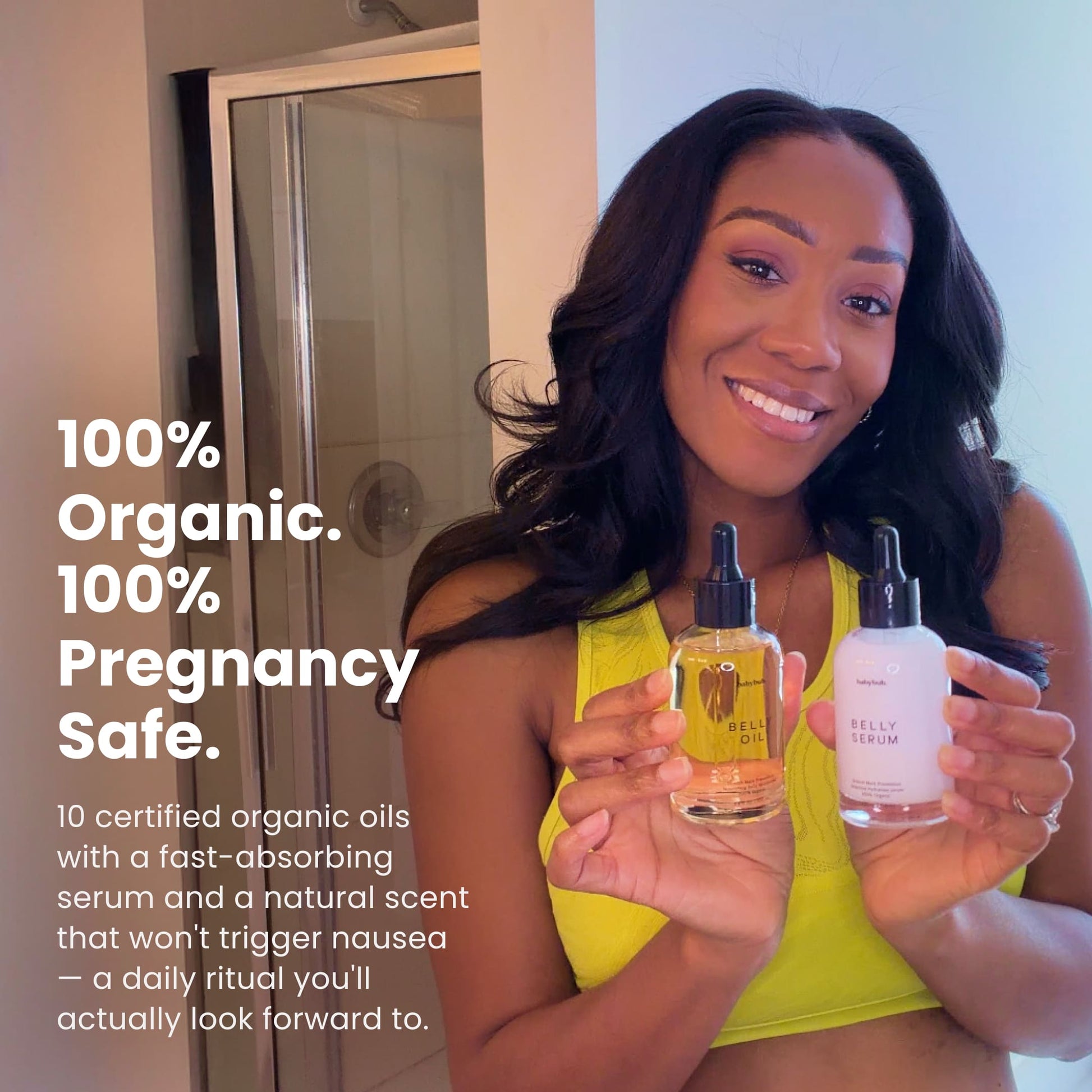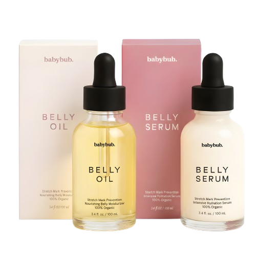 Fast-absorbing serum (seconds) and lightweight oil (2-3 minutes) that won't leave you sticky or greasy. Pleasant natural fragrance that won't trigger pregnancy nausea. Safe, gentle, effective everything your changing body deserves.