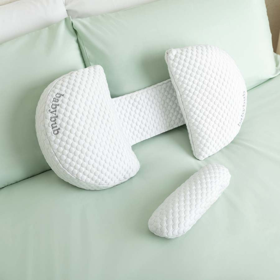 This pillow is like your pregnancy sidekick. It’s super-soft, and adjustable, and grows with your bump—just like your cravings for pickles and ice cream.