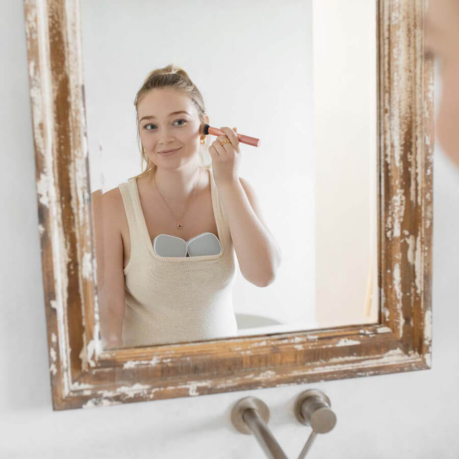 Each and every bra has a different level of support, so make sure to get the compression right before each session. If you are using a particularly structured and inflexible bra, the included Bra Adjuster may be used to create more room.